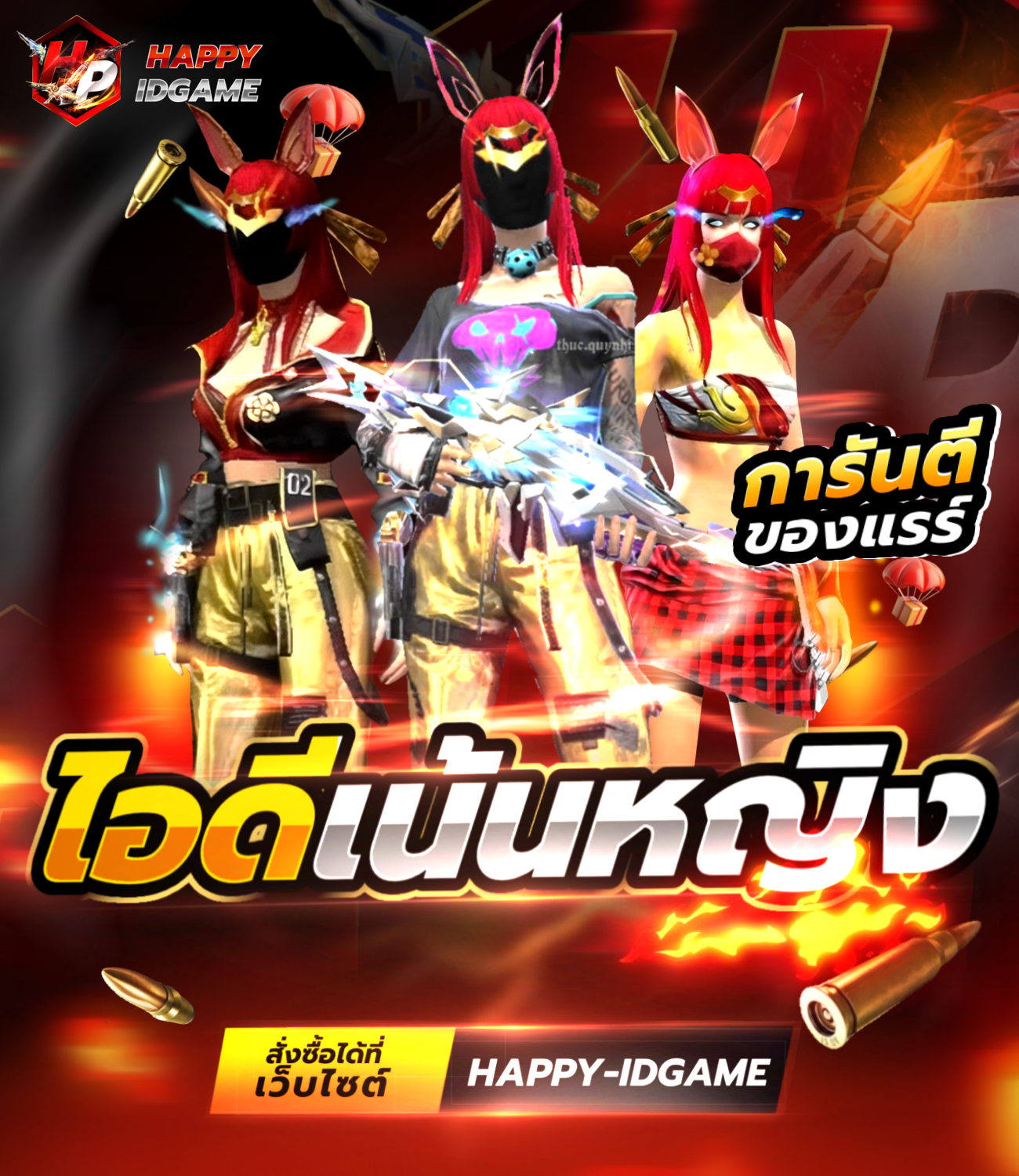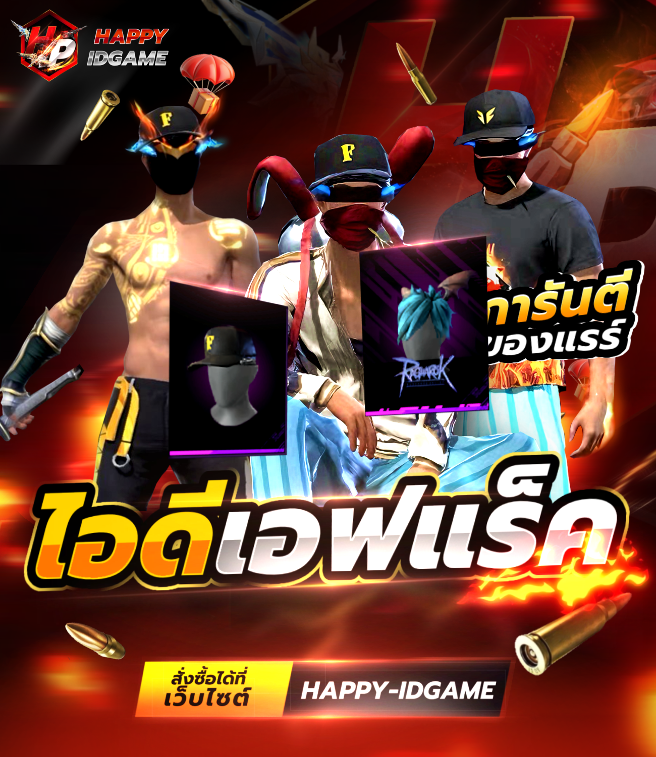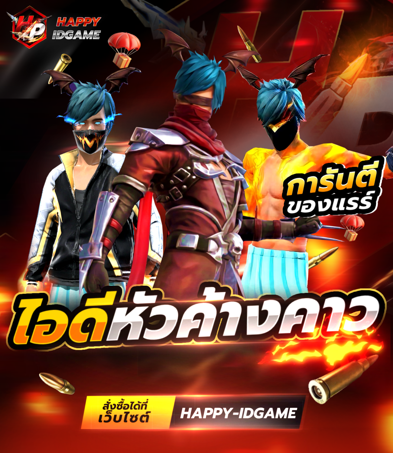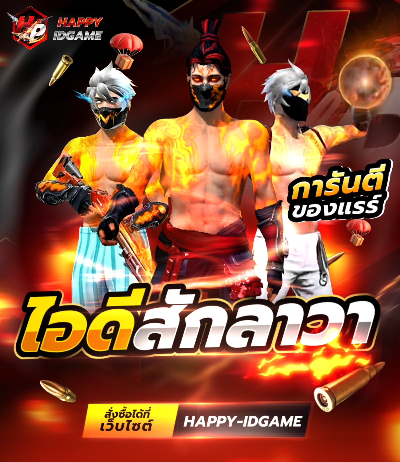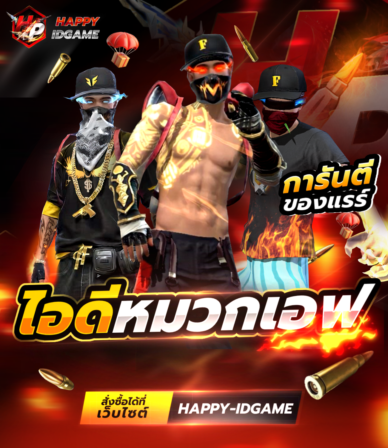 มีสกินหมัดที่มีในเกม Free Fire อาจจะมีสกินหมัดมากกว่า 1 สกิน หลังจากรับIDแล้วเปลี่ยนผ่านและอีเมลทันที รับประกันID 15 วัน หากพบปัญหาเปลี่ยนIDได้